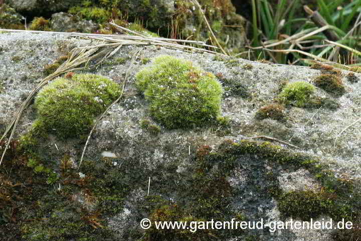 Wer im Garten Steine als Gestaltungselement einsetzt und sich darüber freut, dass alles so natürlich wie möglich aussieht, vielleicht sogar wie über Jahrzehnte gewachsen, der freut sich auch, sobald sich irgendwo ein Moospolster zeigt. Im ersten Jahr. Im zweiten Jahr gilt das Interesse dem Wachstum und der Ausbreitung der Moospolster. Noch ein Jahr später kommt es darauf an, welches Moos sich angesiedelt hat (oder vielleicht sogar angesiedelt wurde).