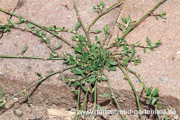 Mit meist langen Ranken schleichen Gewöhnlicher Gundermann (Glechoma hederacea) und Kriechendes Fingerkraut (Potentilla reptans) über den Boden und bilden an sogenannten Wachstumsknoten der Ranken Wurzeln und damit neue Pflanzen. Der Weg, den sie so zurücklegen, lässt sich leicht verfolgen, und damit sind die "Jungpflanzen" bequem aufzuspüren. Beim Entfernen sollten Sie jedoch nicht nur an den Trieben ziehen (die dabei vielleicht bloß abreißen), sondern gründlich arbeiten und gut darauf achten, dass alle wurzelnden Teile ausgegraben und entfernt werden.